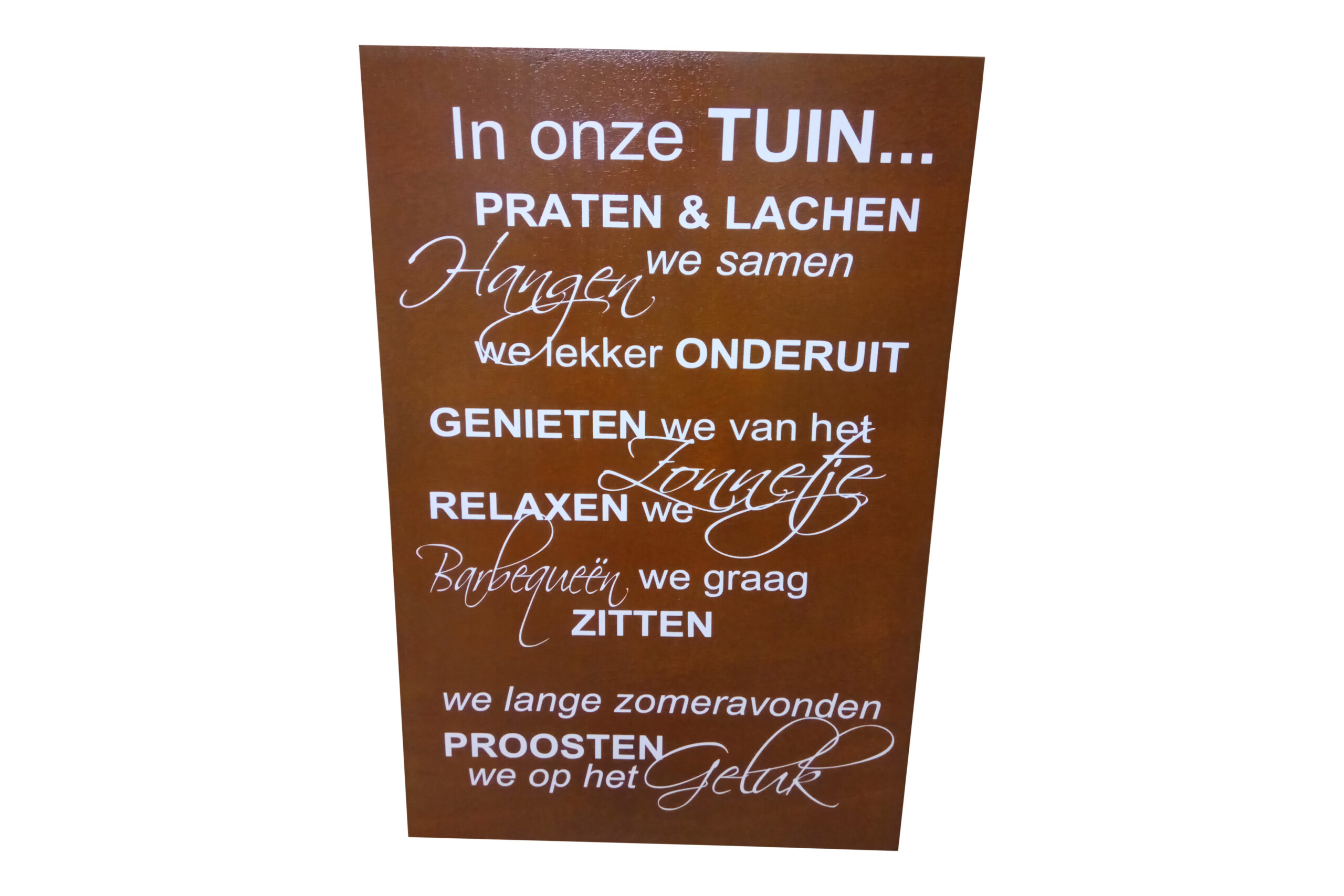 Een mooi groot tuinbord geschikt voor buiten tekst is eventueel aanpasbaar.